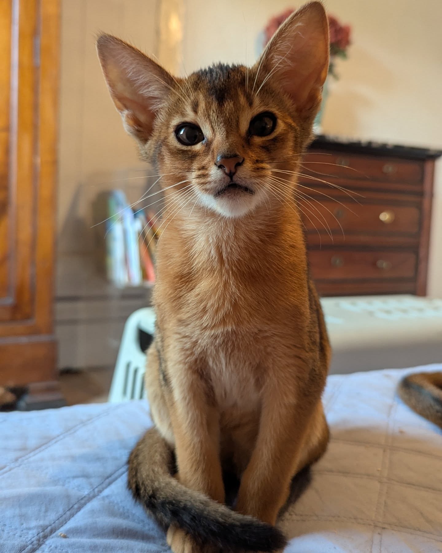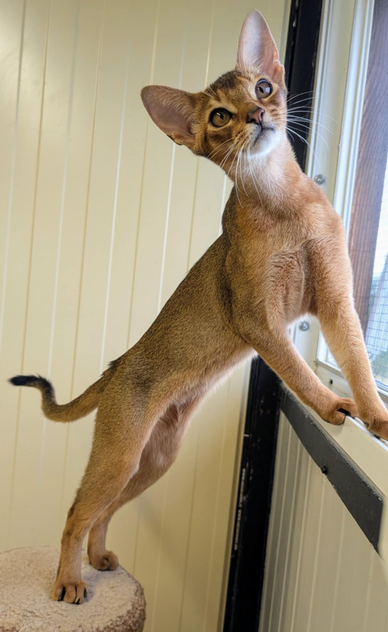 Elle est de couleur lièvre, non porteuse de dilution, ce qui signifie qu'elle ne pourra avoir que des chatons de couleur lièvre. Elle a une couleur bien chaude, un magnifique profil.