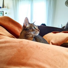 Lors de sa première portée dont les chatons sont nés le 18 janvier 2025, elle nous aura démontré que c'est une mère exceptionnelle, ultra protectrice.