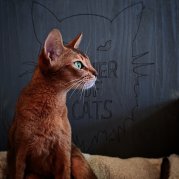 La rencontre avec l'abyssin fut un véritable coup de coeur ; le standard le décrit comme un chat d'apparence royale, souple et agile comme une panthère. En effet, c'est son élégance, sa prestance qui m'ont séduites. Lorsque j'ai fait connaissance avec ce chat, sa vivacité et son intelligence m'ont conquises. Ce sont des chats plein de vie, vifs, agiles, joueurs, drôles, intrépides, plein de personnalité, sensibles, fidèles, doux, affectueux, aimables, curieux, attentifs... les adjectifs ne manquent pas pour les décrire... Me voici contaminée par le virus de l'abyssinite aigüe !