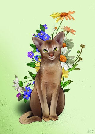 La rencontre avec l'abyssin fut un véritable coup de coeur ; le standard le décrit comme un chat d'apparence royale, souple et agile comme une panthère. En effet, c'est son élégance, sa prestance qui m'ont séduites. Lorsque j'ai fait connaissance avec ce chat, sa vivacité et son intelligence m'ont conquises. Ce sont des chats plein de vie, vifs, agiles, joueurs, drôles, intrépides, plein de personnalité, sensibles, fidèles, doux, affectueux, aimables, curieux, attentifs... les adjectifs ne manquent pas pour les décrire... Me voici contaminée par le virus de l'abyssinite aigüe !