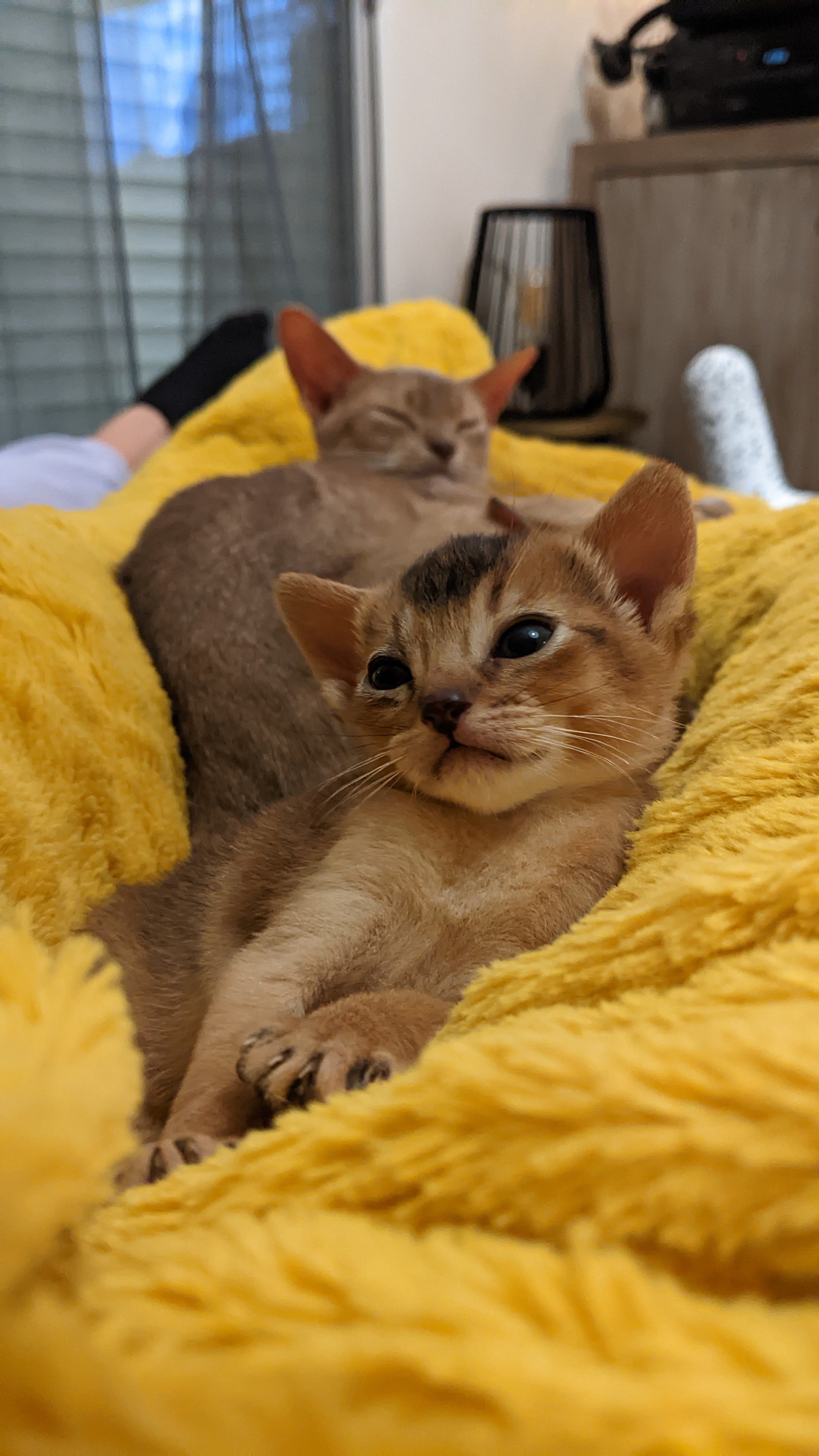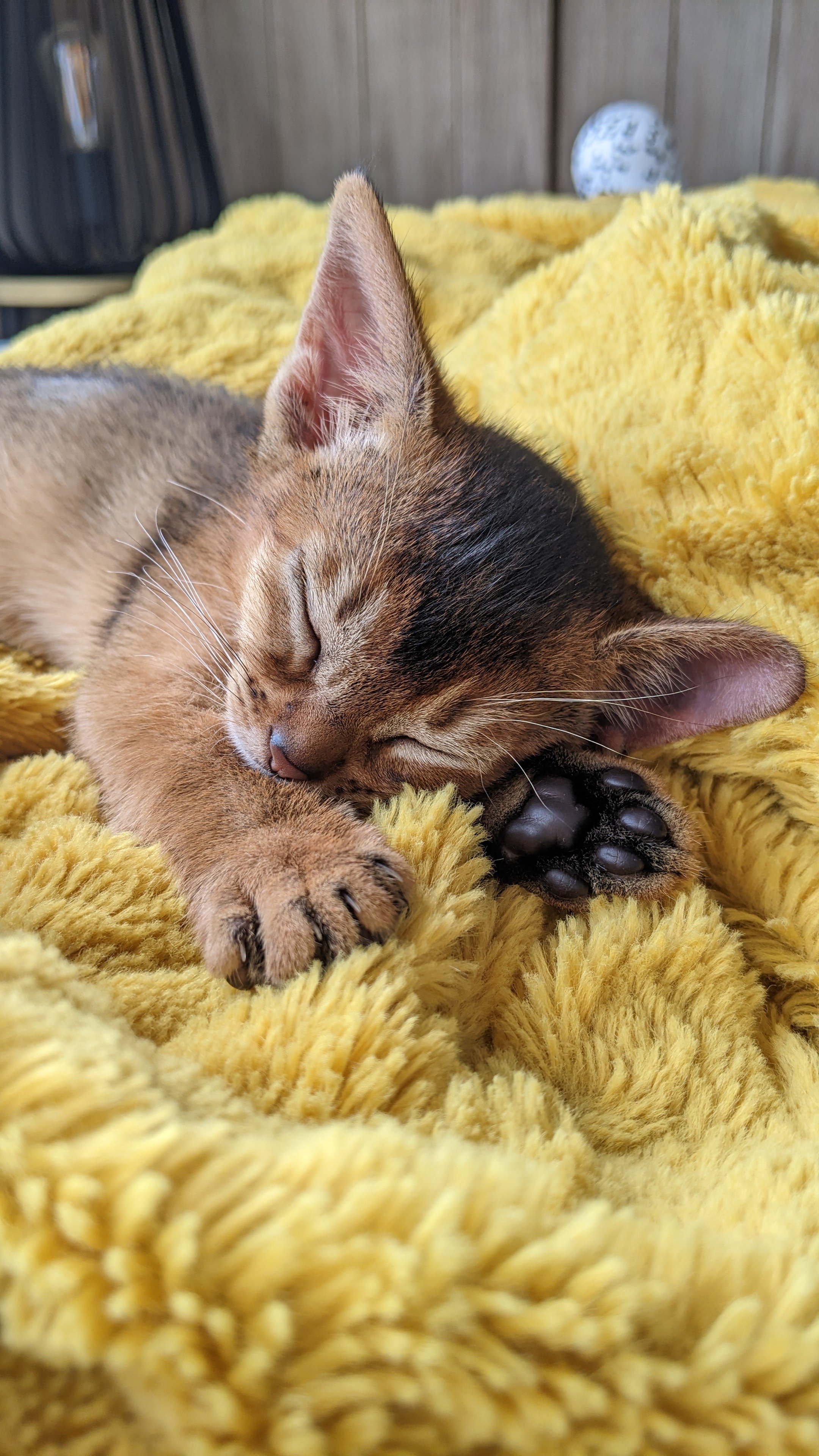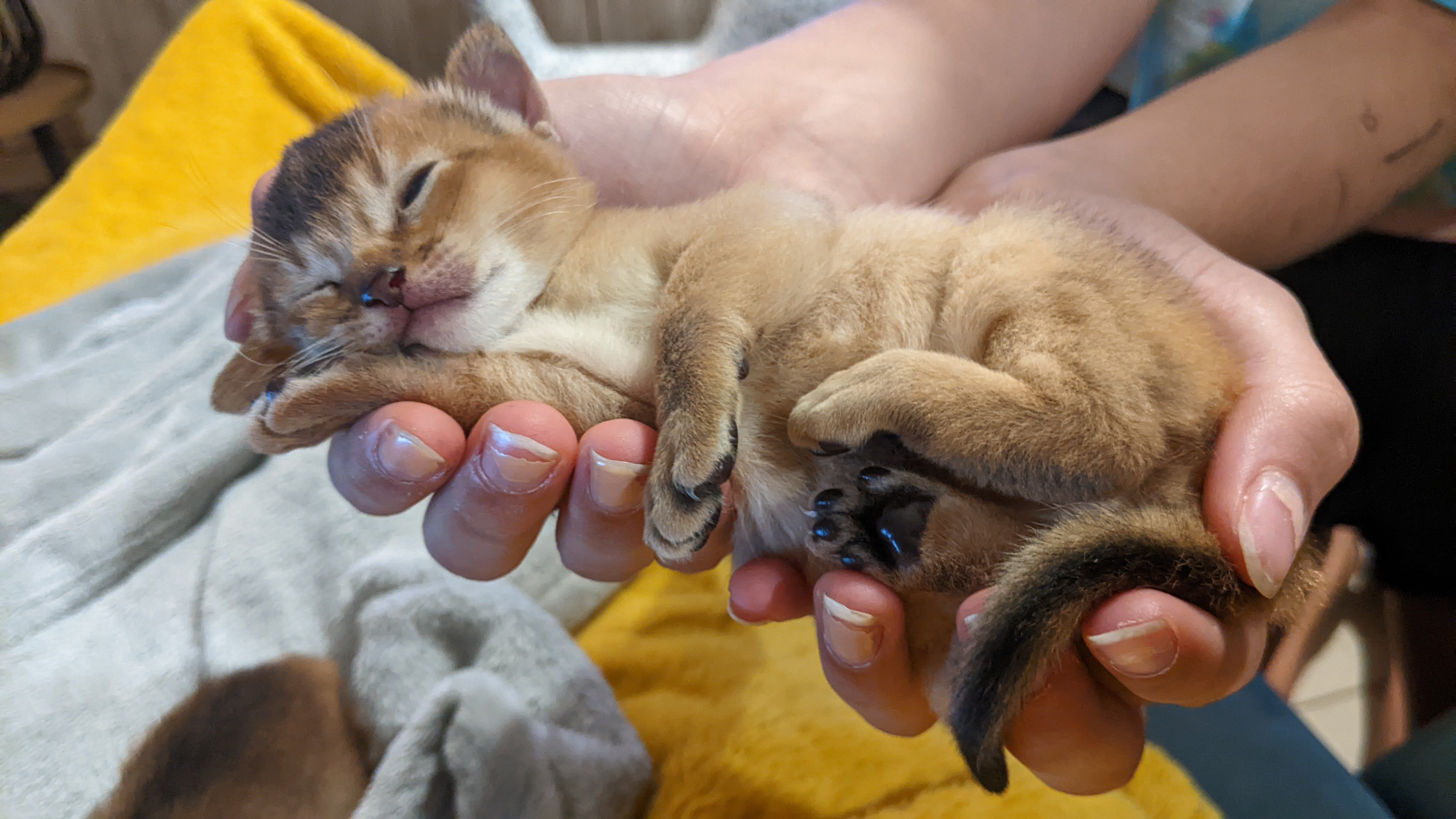Elle est de couleur lièvre, porteuse de dilution et de cinnamon., ce qui signifie qu'en la mariant à un mâle également porteur de dilution et de cinnamon, nous pouvons obtenir un joli panel couleurs des chatons (lièvre, bleu, sorrel et fawn).